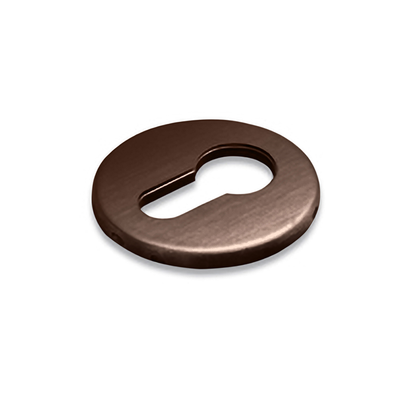 Rozet t.b.v. profielcilinder in mat brons PVD, klikmodel, wordt per stuk of per set geleverd. Indien besteld per stuk worden deze met houtschroefjes geleverd. Indien besteld per paar worden ze met patentboutjes geleverd.
