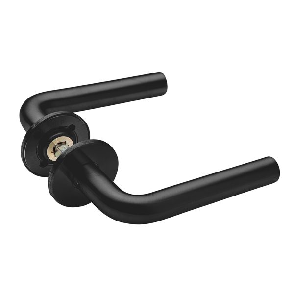 Deurkruk L-model charcoal op rond rozet 2 maten