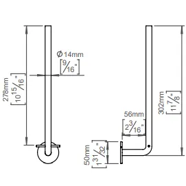 Wandmodel reserverolhouder in een L-model op rozetje in geborsteld RVS 316. Verkrijgbaar in 2 maten: 160mm (1 toiletrol) en 320mm (2 toiletrollen)